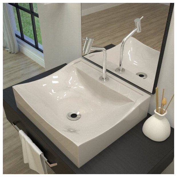 1 Cuba de Apoio , 1 Torneira de mesa baixa, 1 Válvula de Escoamento , 1 Sifão PVC Universal Cromado, 1 Engate Flexível 40cm