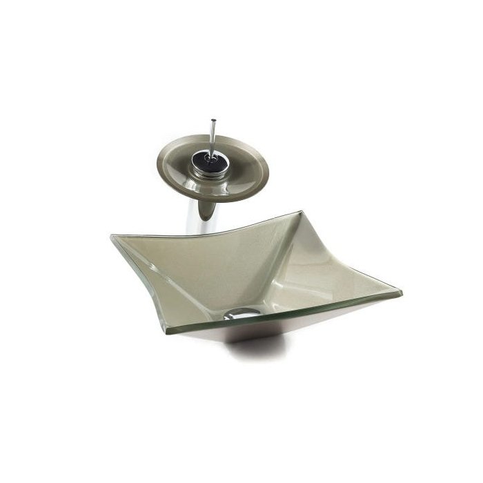 kit Cuba Quadrada RT 30 Cm + Torneira Cascata + Válvula + Sifão - Creme
