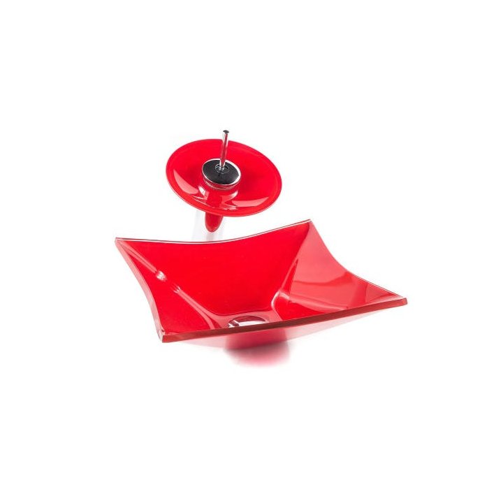 kit Cuba Quadrada RT 30 Cm + Torneira Cascata + Válvula + Sifão - Vermelho