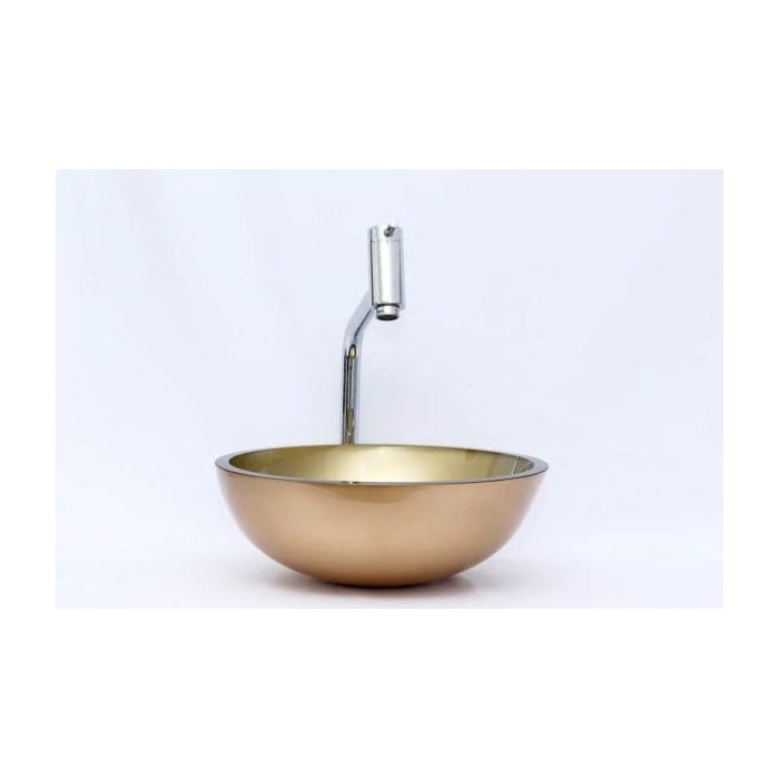 Kit: Cuba Redonda 30 Cm + Torneira Link Alta + Válvula Click - Dourado Dourado