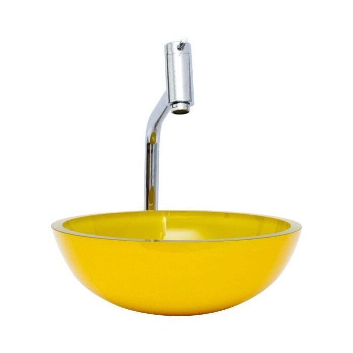 Kit: Cuba Redonda 35 Cm Amarela + Torneira Link Alta + Válvula Click