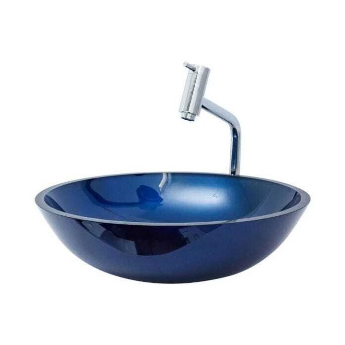 Kit: Cuba Redonda 42cm + Torneira Link + Válvula + Sifão - Azul Escuro