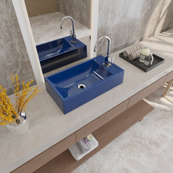 O Kit KTCARL545W.AZE.LC70.AP01 é uma combinação perfeita da Cuba de Apoio CARL545W.AZE com acessórios complementares, prontos para instalação no seu lavabo ou móvel de banheiro. Ele conta com 1 Cuba de Apoio Retangular Roma 54,5X28,6cm Azul Escuro 1 Torneira De Mesa Classic Luxo 1/4 De Volta 1195 C70 1 Válvula P/Lavatório 1" (2,6cm) V01 Metal Cromado 1 Sifão Pvc Universal Branco 1 Engate Flexível Pvc Branco 40cm 0 , todos compatíveis e prontos para instalação.