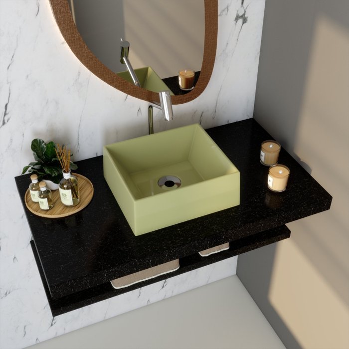 | Material Principal Construção e Acabamento | Mármore Sintético |
