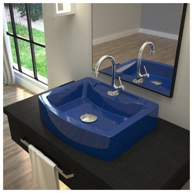 Kit Cuba Rt41 com Torneira 1198 Metal e Válvula Click 1 Polegada e Meia e Sifão Pvc e Flexível Compa Azul Escuro
