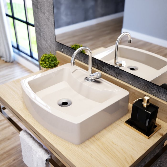 | Itens Inclusos | 1 Cuba de Apoio, 1 Torneira de mesa baixa, 1 Válvula de Escoamento, 1 Sifão PVC Universal Branco, 1 Engate Flexível 40cm |