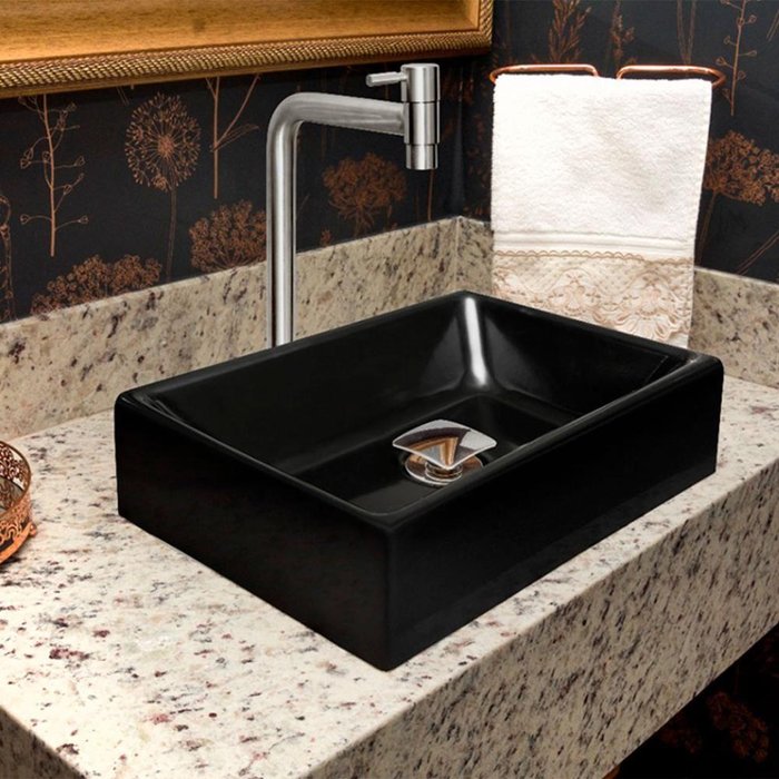Kit Cuba Torino Sobrepor C/ Torneira Inox E Valvula Click Preto Preto