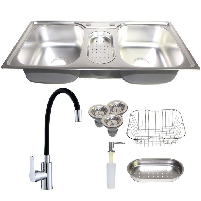 Kit Cuba Tripla Inox 201 + Torneira Flexível Emborrachada Quente Fria - Cromado
