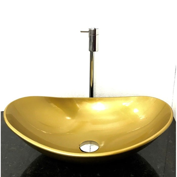 Kit cuba vidro oval dourada,válvula,torneira cromada,sifão