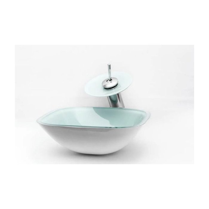 Kit: Cuba Vidro Quadrada 36cm + Torneira Cascata + Válvula - Branco Branco