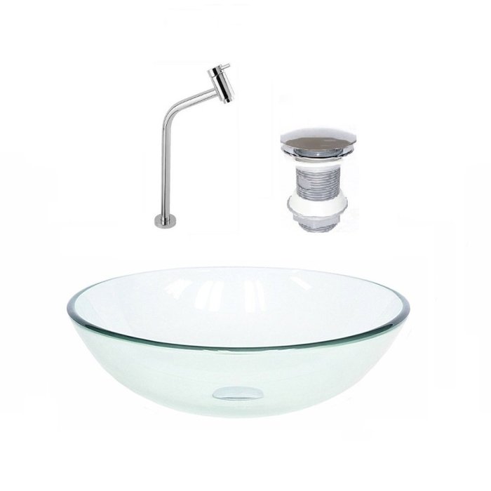 Kit Cuba Vidro Redonda 42cm Torneira e Válvula Incolor