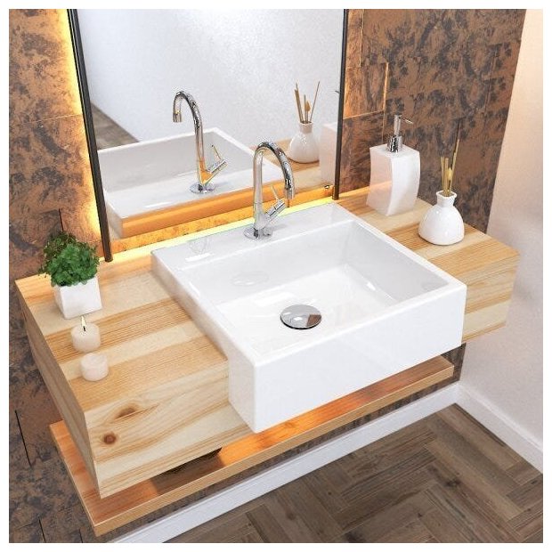 1 Cuba de Apoio + 1 Torneira de mesa baixa + 1 Válvula de Escoamento Clik Up