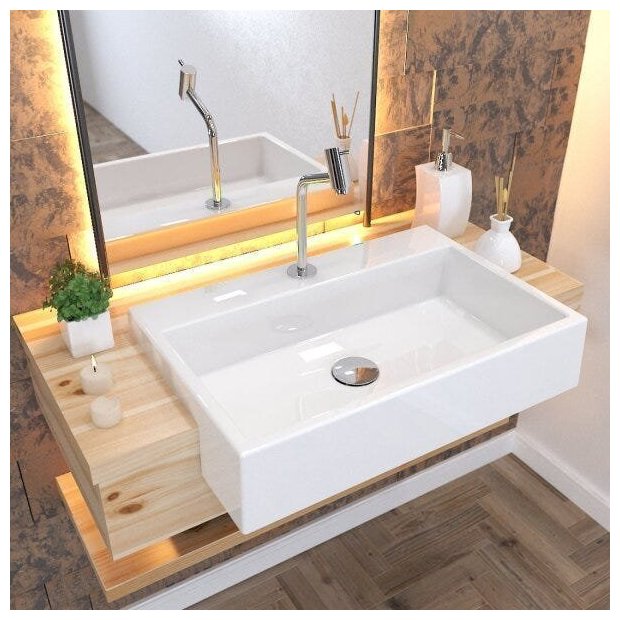 1 Cuba de Apoio, 1 Torneira de Mesa Baixa, 1 Válvula de Escoamento Clik Up, 1 Sifão PVC Universal, 1 Engate Flexível 40cm e Manual de Instalação