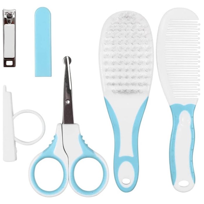 O kit inclui um cortador de unhas, uma tesoura com pontas arredondadas, um pente e uma escova de cabelo. Cada um desses itens foi projetado pensando na segurança e na delicadeza da pele e dos cabelos do bebê. O cortador de unhas possui uma lâmina afiada e precisa, projetada especificamente para cortar as unhas delicadas com segurança. O formato ergonômico do cortador facilita o manuseio e proporciona conforto durante o uso, além de contar com o adaptador de precisão. A tesoura possui pontas arredondadas, o que evita qualquer risco de machucar o bebê. Ela é ideal para aparar os pelos do bebê, como sobrancelhas e cabelinhos. O pente e a escova de cabelo são perfeitos para cuidar dos cabelos delicados do bebê. Feitos com cerdas macias e suaves, ajudam a desembaraçar e pentear os cabelos de forma gentil, evitando desconforto ou irritação no couro cabeludo do bebê.