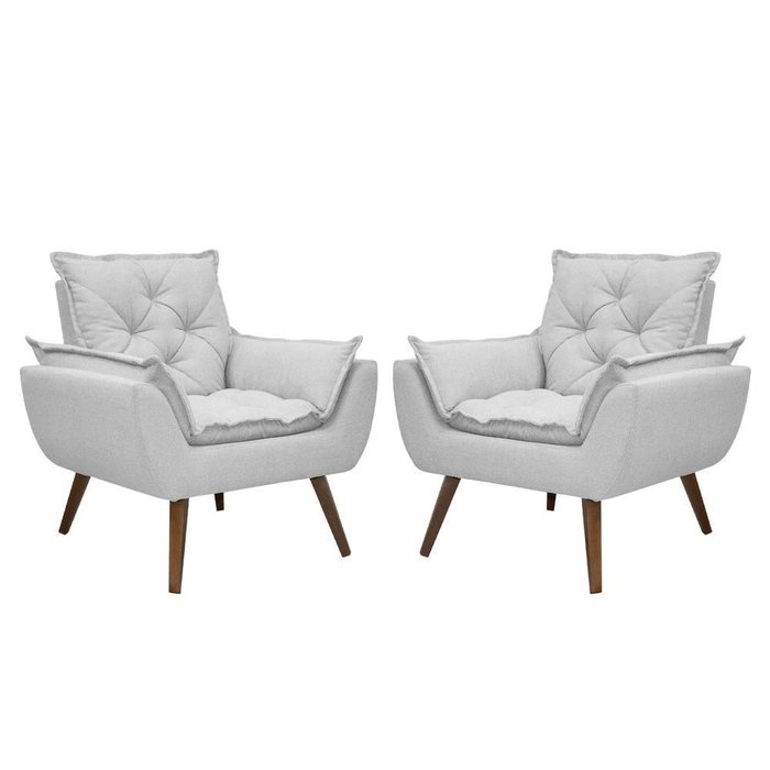 Kit De 2 Poltronas Opala Conforto Tecido Boucle Pés Trapézio Cinza