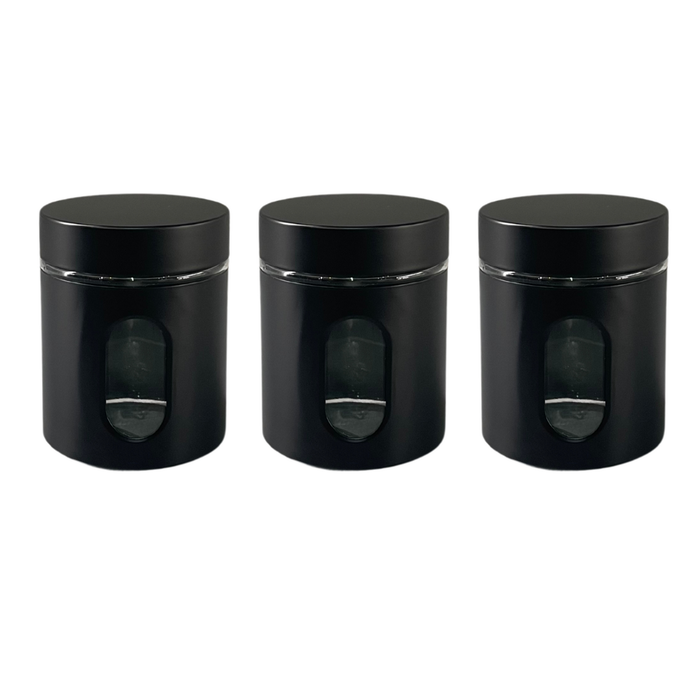 Kit de 3 Potes de Vidro e Metal Preto com Visor 700ml Preto