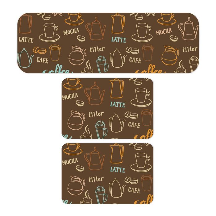 Kit de 3 Tapetes para Cozinha Coffee Antiderrapante Marrom