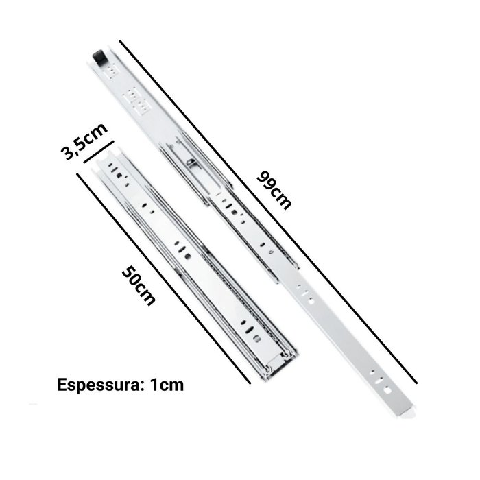 Corrediça telescópica Light para gaveta Albras H35 25kgDados técnicos:- Abertura: 100% - Extração total.- Corrediça telescópica com deslizamento através de esferas de aço- Sistema Push open- Acabamento: zinco eletrolítico- Fácil instalação- Lado esquero e lado direito- Travas que Permitem a Retirada da GavetaAplicação: Pode ser utilizada em armários de cozinhas, escritórios, closets, quartos, banheiros, lavanderias, móveis em geral ou em prateleiras retráteis/extensíveis.Conservação: Não utilize álcool, detergente ou solvente, pois eles podem retirar a camada de verniz aplicada ao produto. Esponjas de aço ou outros materiais abrasivos são proibidos. Utilize pano macio e seco ou levemente umedecido com água. Um jato de ar também é uma excelente ferramenta para manter suas corrediças sempre limpas e livres de poeira.* Imagens meramente ilustrativas * Agradecemos sua visita. Estamos à disposição.