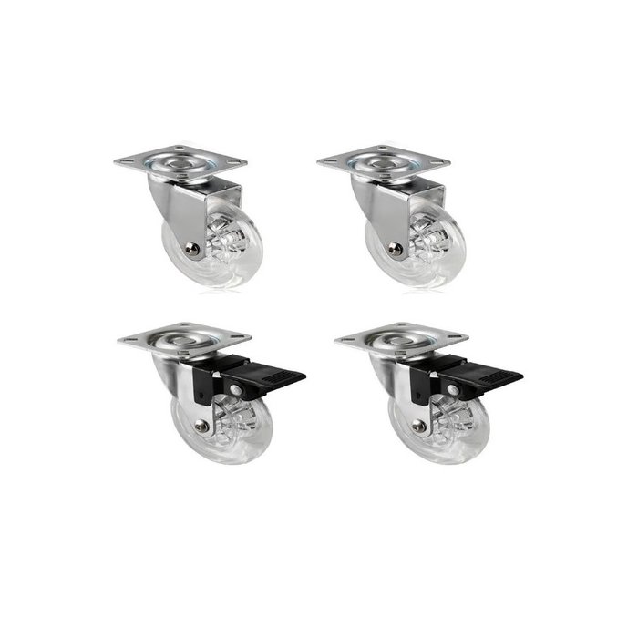 Kit de 4 Rodizio Silicone 75mm Gel 2 Freio Trava 2 Sem Freio Transparente