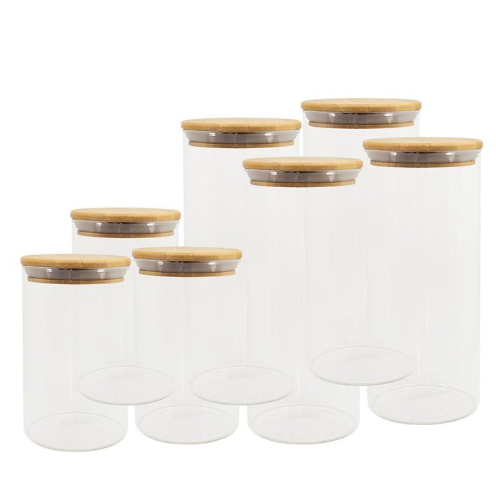 Kit de 7 Potes de Vidro Herméticos Tampa de Bambu - Oikos U