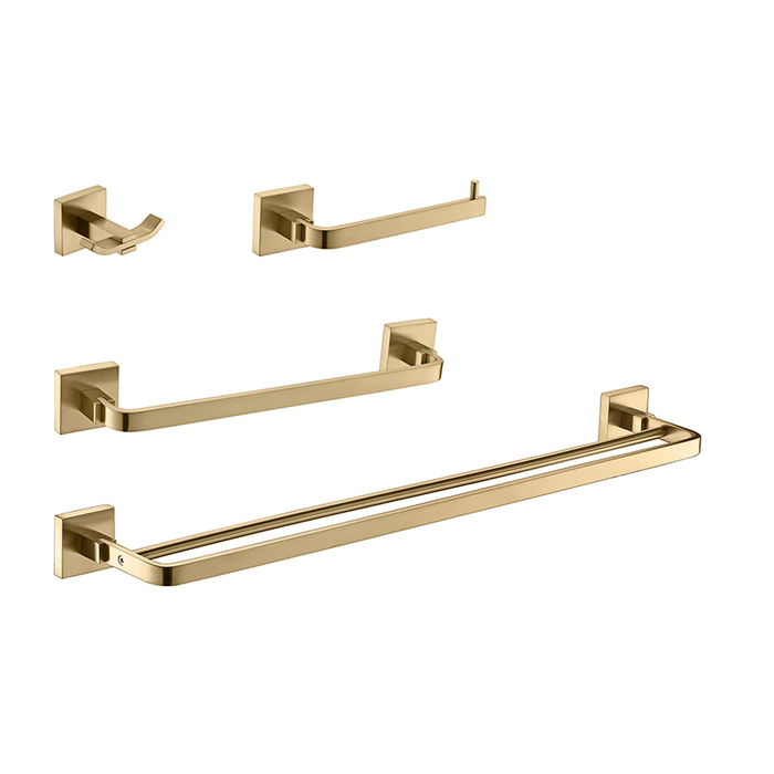 Kit De Acessório Quadrado Em Latão Dourado Fosco Para Banheiro 4 Peças AK001DF Harmony Kit De Acessó