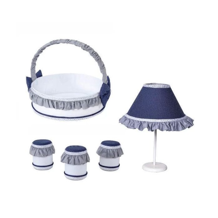 Descrição do Produto: O Kit de Acessórios Futebol é fabricado em tecido percal 100% algodão, 180 fios, de alta qualidade, é um complemento essencial para o enxoval do bebê. Seu design charmoso e moderno dá um toque de beleza ao ambiente. O produto faz parte da Coleção Requinte da Giz de Cor, uma empresa que possui um atendimento personalizado, com transparência nas relações e alto padrão de qualidade, proporcionando grande satisfação a mamãe e conforto ao bebê. Conteúdo da embalagem: 01 Jogo de Potes Plástico 03 peças 12cm alt. 01 Abajur 33cm alt. 01 Cesta 30cm Características Técnicas: Tecido: Percal 180 fios - 100% Algodão Quantidade: 05 Peças Observações importantes: - As imagens são meramente ilustrativas não acompanham objetos de decoração e eletros; - Todos os produtos vão embalados com total segurança; - Ao receber o produto o cliente deve verificar as condições da embalagem, havendo alguma avaria não assine o comprovante de recebimento, entre em contato com a loja para orientações; - Disponibilizamos de uma grande parte dos produtos par envio imediato, os estoques, são dinâmicos e a disponibilidade específica de determinado produto está sujeita a confirmação; - Alguns produtos como a linha de estofados, puffs e poltronas, são produzidos sob encomenda, portanto o prazo de entrega pode ser maior; - Ofertas e condições válidas somente para compras via internet; - Todos os produtos estão sujeitos a alteração de preço sem prévio aviso (produtos em pedidos realizados não tem seu preço alterado) e sujeitos a disponibilidade de estoque dos distribuidores e fabricantes; - A NayMulticoisas se responsabilizará pela entrega dos produtos adquiridos até a porta de entrada ou portaria do endereço indicado; - Não nos responsabilizamos, no ato da entrega, por montagens, desmontagens e instalações de produtos, bem como, por subir ou descer escadas/elevadores ou pela utilização de guinchos ou equipamentos similares para acesso a pisos superiores em apartamentos, casas ou escritórios. Estas despesas adicionais serão de responsabilidade do cliente; - Confira as dimensões do produto no momento da compra e certifique-se de que passará normalmente por elevadores, portas, escadas e/ou corredores, evitando assim futuros desagrados ou imprevistos com a entrega do produto; - O valor do frete informado é por via terrestre, até onde a rodovia alcança, valores de frete fluvial ou aéreo deve ser consultado a parte.