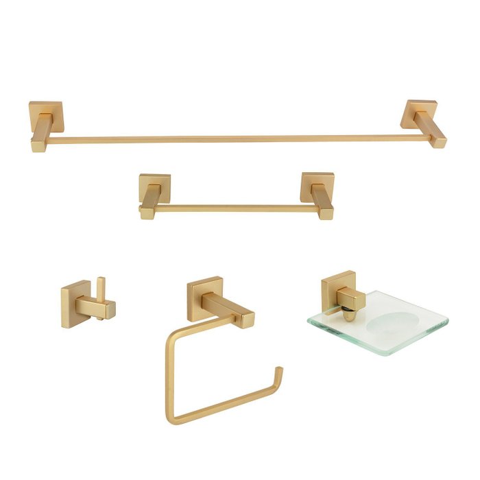 Kit de Acessórios para Banheiro 5 Peças Inox Square SQ12208 Ducon Metais Fosco/Ouro