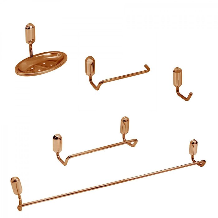 | Medida de Cada Item (A x L x P) (novo) | Saboneteira: 10 x 12,6 x 6 cm Porta toalha de banho: 51 x 6,3 x 4,9 cm Porta toalha de rosto: 26 x 6,3 x 4,9 cm Porta papel higiênico: 18 x 6,3 x 4,9 cm Cabide: 1,9 x 7,8 x 8,2 cm |