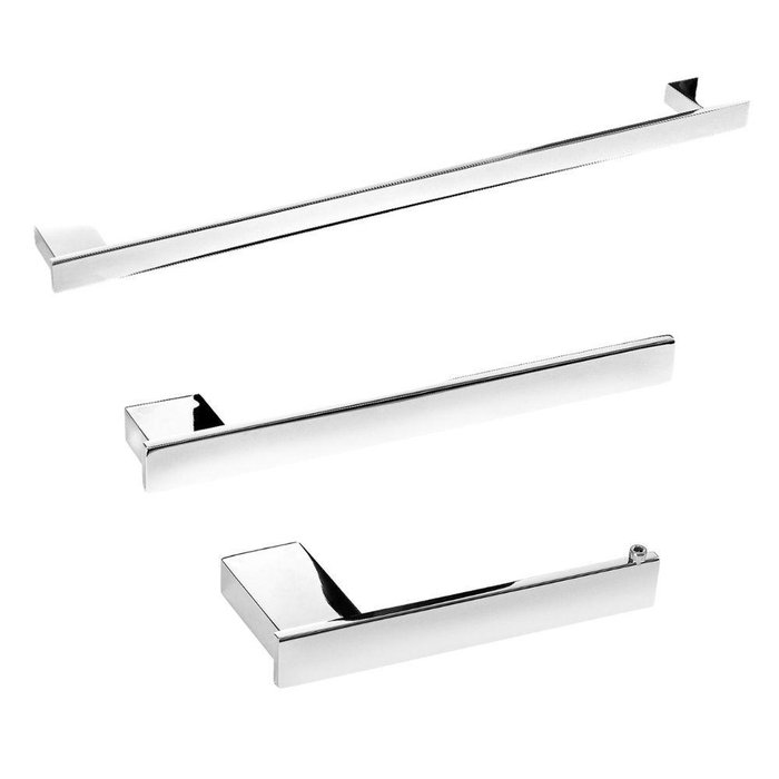 ESPECIFICAÇÕES TÉCNICASAmbiente de instalação: BanheirosTipo de Fixação: Dupla com parafusosAcabamento: CromadoMaterial: Barra chata de Alumínio maciço Medidas Papel HigiênicoProfundidade: 7.5 cmLargura: 18 cmAltura: 2.5 cm Medidas Porta Toalha de RostoProfundidade: 6.0 cmLargura: 28 cmAltura: 2.5 cm Medidas Porta Toalhas de BanhoProfundidade: 6.0 cmLargura: 60 cmAltura: 2.5 cm