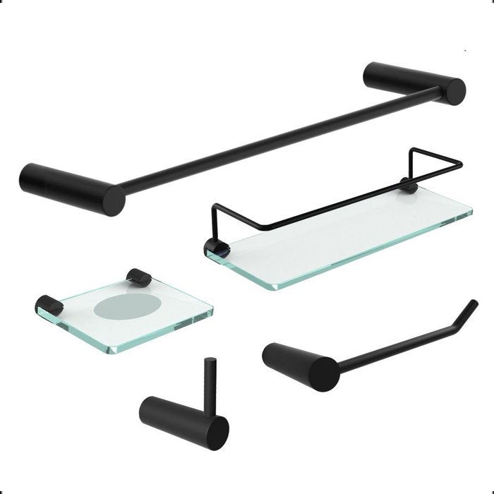 Kit de Acessórios para Banheiro Grego Metal 5 Peças Prateleira Proteção Preto Fosco Orion