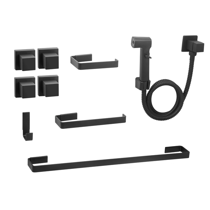 Kit de Acessórios para Banheiro Quadrado Preto Completo Luxo preto