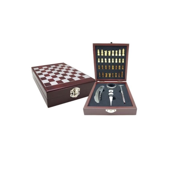 Kit De Acessorios Para Vinho + Mini Jogo De Xadrez Luxo