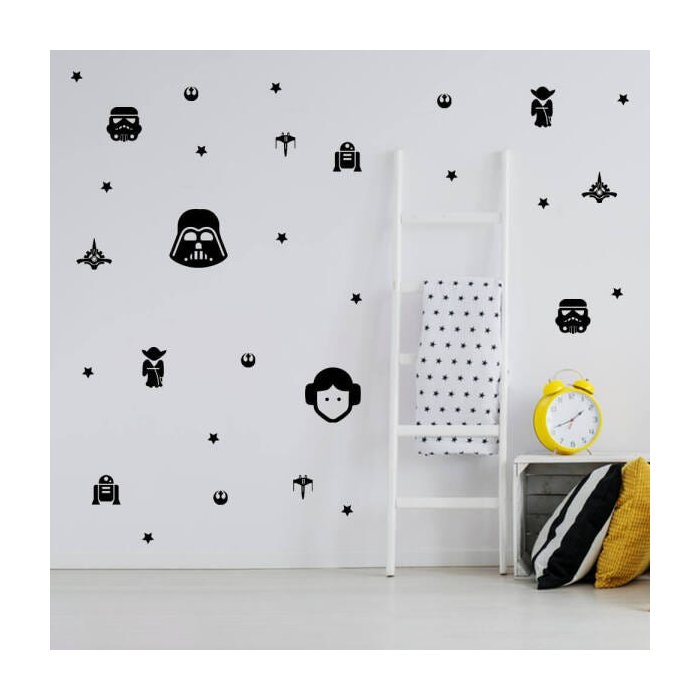 Kit de Adesivos Star Wars Fácil de aplicar, sem sujeira e sem complicação. Você não precisa se acostumar a viver em um ambiente sem graça. Aposte nos adesivos decorativos e traga vida para o seu cantinho especial! Material: Vinil plástico, não tóxico, auto-adesivo. Acompanha máscara de aplicação! Tamanhos aproximados: Tamanho Darth Vader: 19,5cm x 19,8cm Tamanho Princesa Léia: 18,7cm x 18,7cm Tamanho R2-D2: 9,9cm x 9,8cm Tamanho Soldado: 11,8cm x 11,8cm Tamanho Yoda: 13,5cm x 8cm Tamanho Nave 1: 12cm x 10cm Tamanho Nave 2: 7,8cm x 6cm Tamanho Aliança Rebelde: 4,9cm x 4,9cm Tamanho Estrela: 4cm x 4cm Quantidades: Quantidade Darth Vader: 1 unidade Quantidade Princesa Léia: 1 unidade Quantidade R2-D2: 2 unidades Quantidade Soldados: 2 unidades Quantidade Yoda: 2 unidades Quantidade Nave 1: 2 unidades Quantidade Nave 2: 2 unidades Quantidade Aliança Rebelde: 4 unidades Quantidade Estrelas: 18 unidades Quantidade Total: 34 unidades Auto-adesivo: Não precisa de cola para aplicação. Você recebe o produto pronto para ser instalado. Pode ser aplicado em: superfície lisa, sem porosidade. Ex: vidro, parede amaciada, móveis, portas, espelhos, etc. Limpeza: pano úmido e detergente neutro. Não é recomendado utilizar produtos que contenham querosene, álcool ou solvente. Acompanha folheto com instruções de aplicação. Observação: O produto pode apresentar tonalidade e tamanho da estampa diferente da visualizada no monitor.