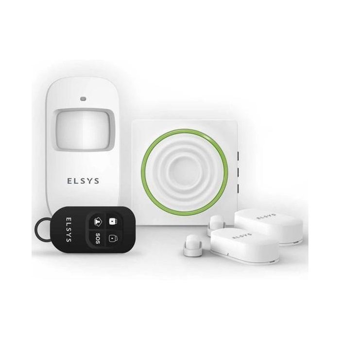 Kit de Alarme Wi-Fi com Sensores sem Fio Elsys é um sistema de segurança residencial e comercial de pequena escala. Ele vem com 2 sensores de abertura, 1 sensor de movimento, um hub para os sensores e um controle remoto.