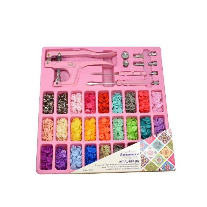 Com este completo kit, você conseguirá uma alta produção e qualidade em seus trabalhos, ótimo kit também para iniciantes, pois como acompanha os botões de todos os tamanhos que o alicate trabalha, você terá uma grande variadade de tipos de trabalhos, é possível também aplicar ilhoses com este alicate e o mesmo acompanha de 4 matrizes diferentes.