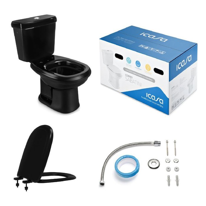 Kit de Bacia com Caixa Acoplada Sabatini 3/6L Preto Icasa