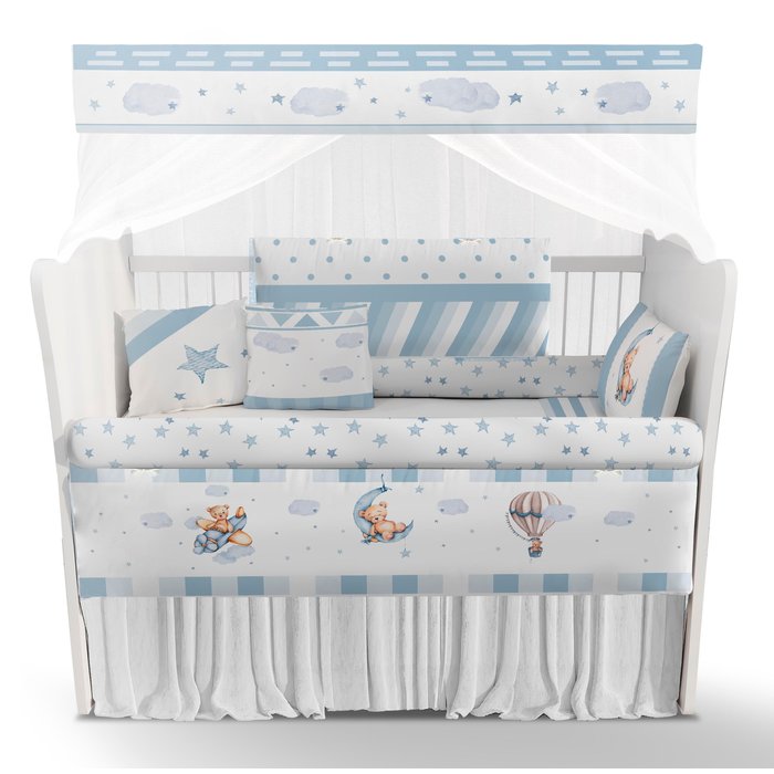 Kit de Berço Enxoval de Bebê Ursinho Azul Nuvens
