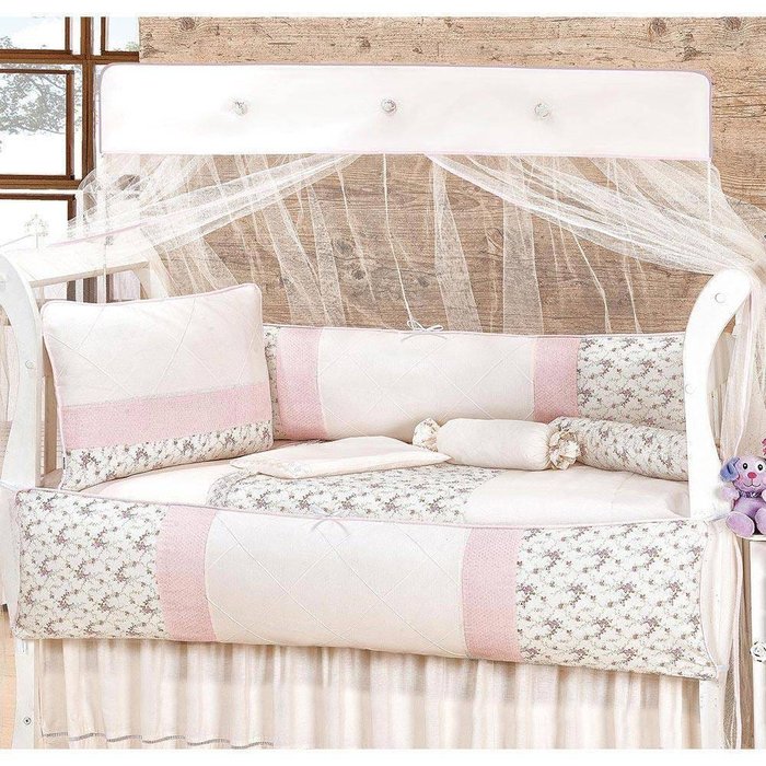 Kit De Berço Nervura Rosa 10 Peças 100% Algodão Padrão Americano