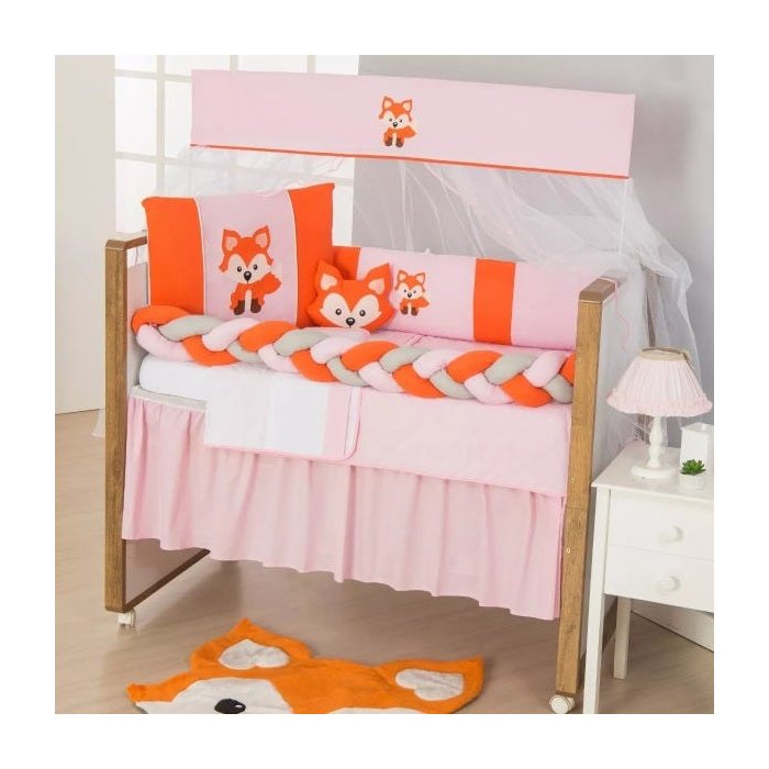 Kit de Berço Protetores Raposinha 10pçs Laranja e Rosa Bebe Menina