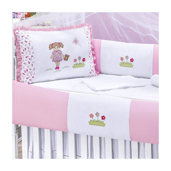 Kit de Berço Rosa Menina 10 Peças Padrão Americano Heloísa
