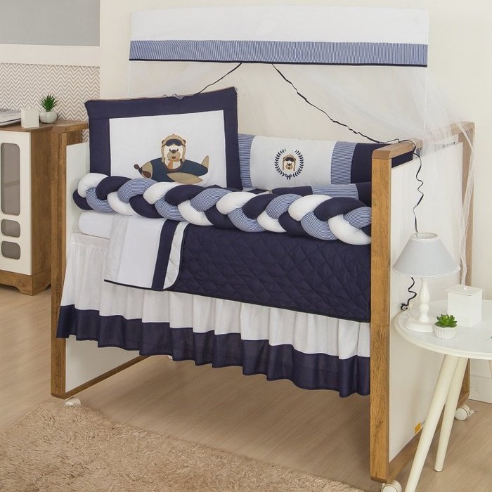Kit de Berço Trança Urso Aviador 10pçs Menino Azul Marinho