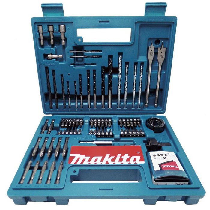 Kit de Bits e Brocas com 100 Peças Makita Azul B-54879A Makita é uma empresa de renome que está sempre preocupada em ampliar a qualidade de vida de seus clientes. Pensando nisso, o Kit de Bits e Brocas B-54879 foi criado.Um kit ideal para a utilização em reformas, construções ou até mesmo pequenos reparos. São 100 peças altamente resistentes, de alta qualidade e que farão toda a diferença para você que faz a utilização de furadeiras e parafusadeiras com frequência. Conta também com uma maleta, que além de trazer maior mobilidade para seus acessórios, proporciona maior praticidade devido a sua organização interna.