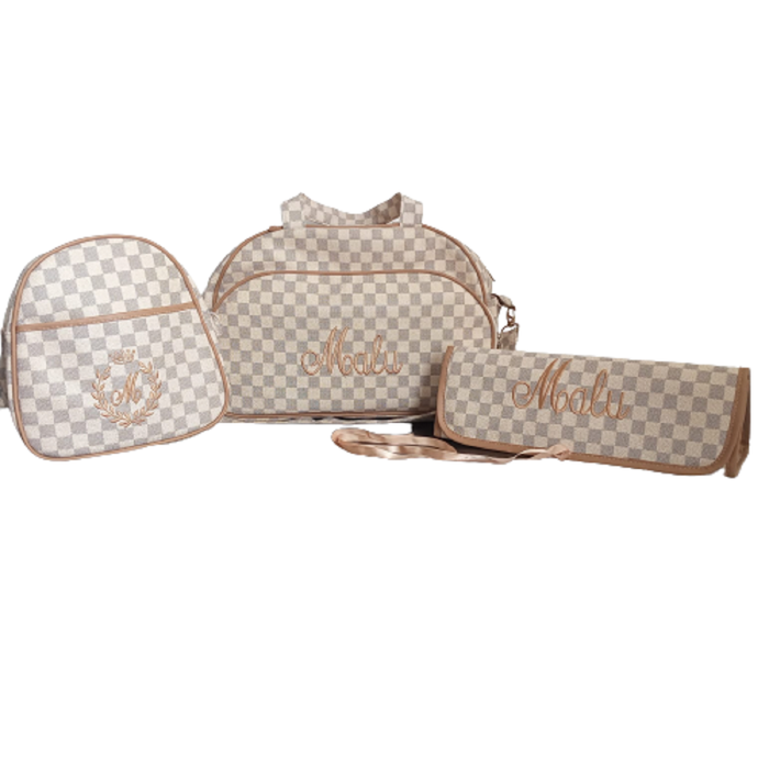 Kit de Bolsa de Maternidade Bordada com trocador - Nome MALU