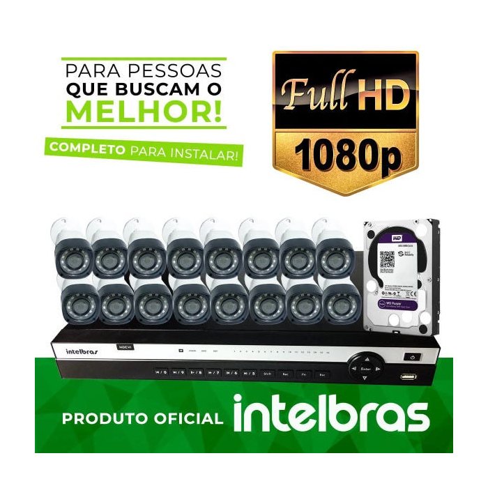 Kit de câmeras monitoramento profissional alta definição Full HD Intelbras 16 canais MHDX 1080p