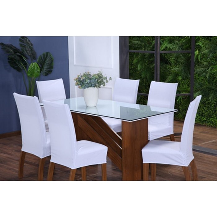 Kit de Capas de Cadeira Estofada 4 Lugares Mesa de Jantar Protege Muda a Decoração Malha Helanca Lis Branco