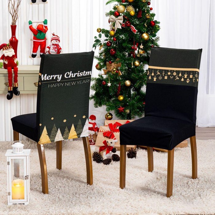Kit de Capas de Cadeira Jantar Estampadas Ano Novo Ajustável com Elástico 06 Peças Cor Árvore