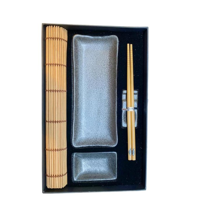 Detalhe do Produto Material: Cerâmica 1 Prato 1 Bowls para molho 1 Suportes para Hashi 1 Hashi 1 Lugar Americano