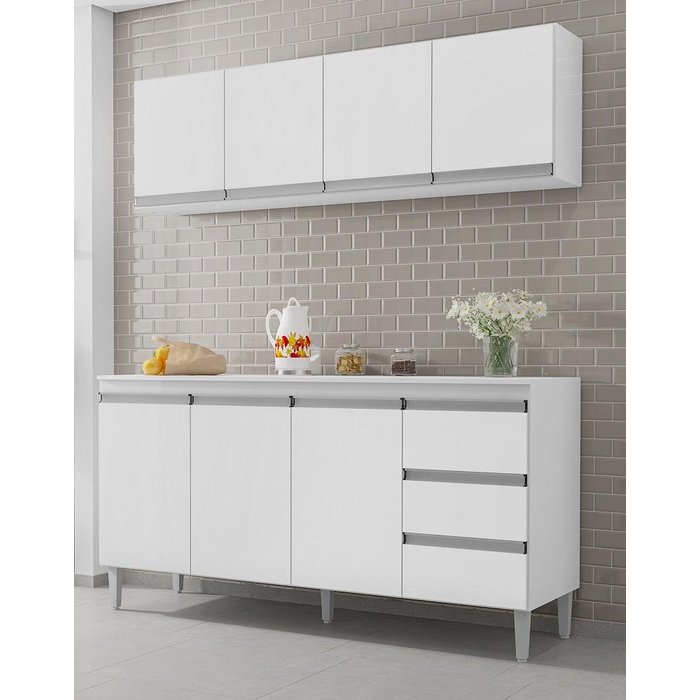 Kit de Cozinha Andréia Armário Aéreo 160mt e Balcão de Pia com Tampo Branco Ajl