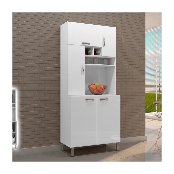 O Kit Cozinha Compacta Jade 5 Portas é um armário compacto para quem gosta de praticidade, ideal para quem não tem muito espaço e prefere organizar seus utensílios de cozinha de forma fácil e prática! Sua estrutura é em MDP com 5 portas com dobradiças metálicas, nichos, puxadores cromados e pés com regulagem de altura.