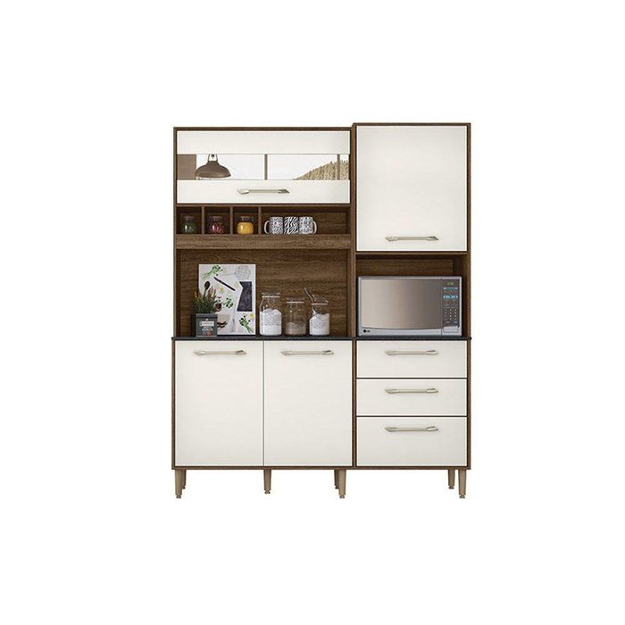 Kit de Cozinha Compacta Mauí c/ 4 Portas e 3 Gavetas 160cm Evora/Off White - nicioli Evora/Off White